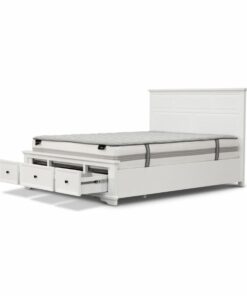 PRODUCT FEATURES • A timeless white painted coastal range with a distinctive high headboard • Matt black round metal handles • Case goods fully assembled, can also coordinate with Sala bed • Storage drawers in beds to maximize storage for your roomAcacia (Pine), MDF Timber
