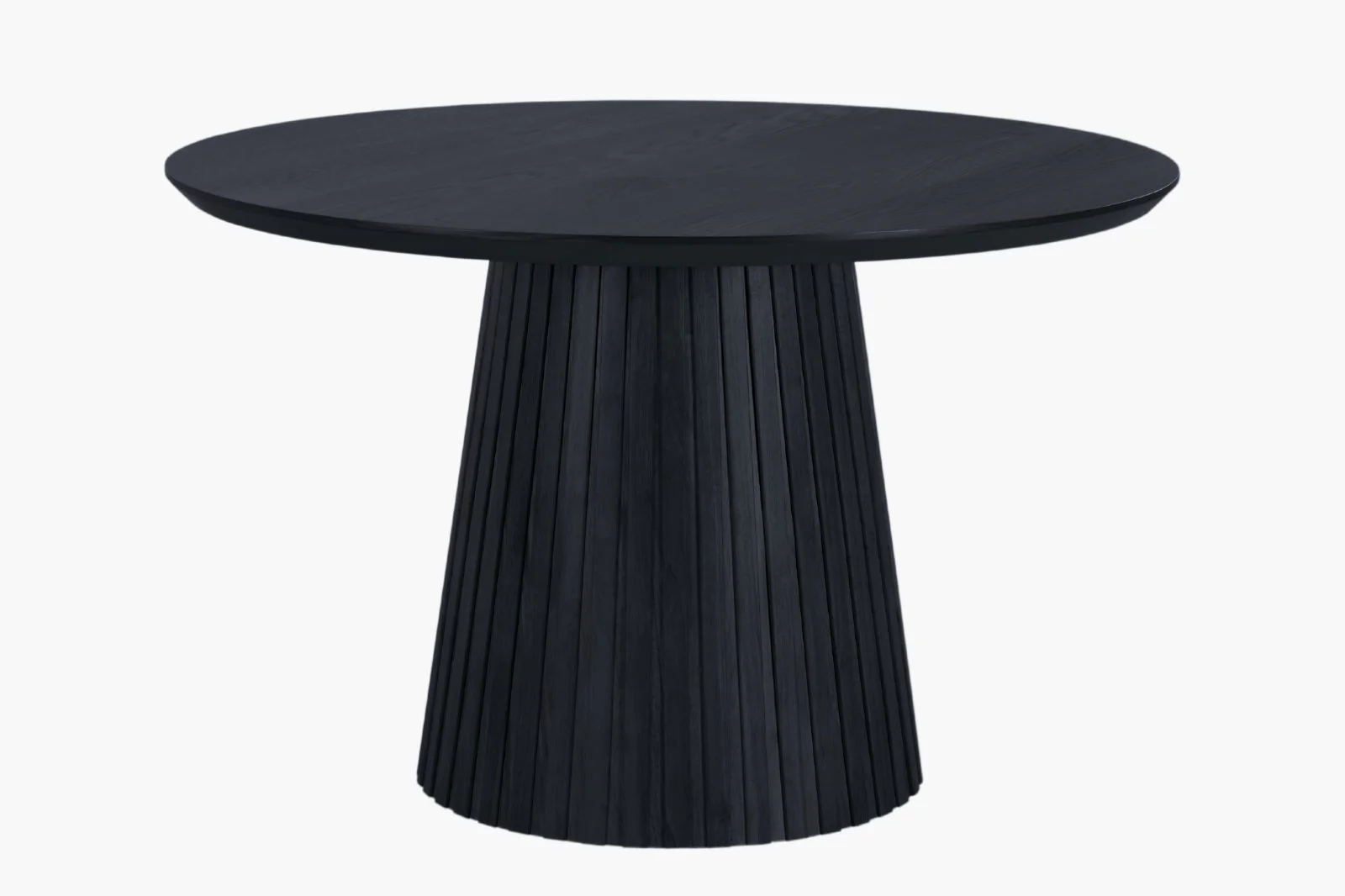 Halo Dining Table: The Halo Dining Table in Black brings elegance to your dining space. It features a round high-quality oak top with a warm, natural finish. The distinctive fluted base creates a sophisticated, architectural centerpiece for your home.