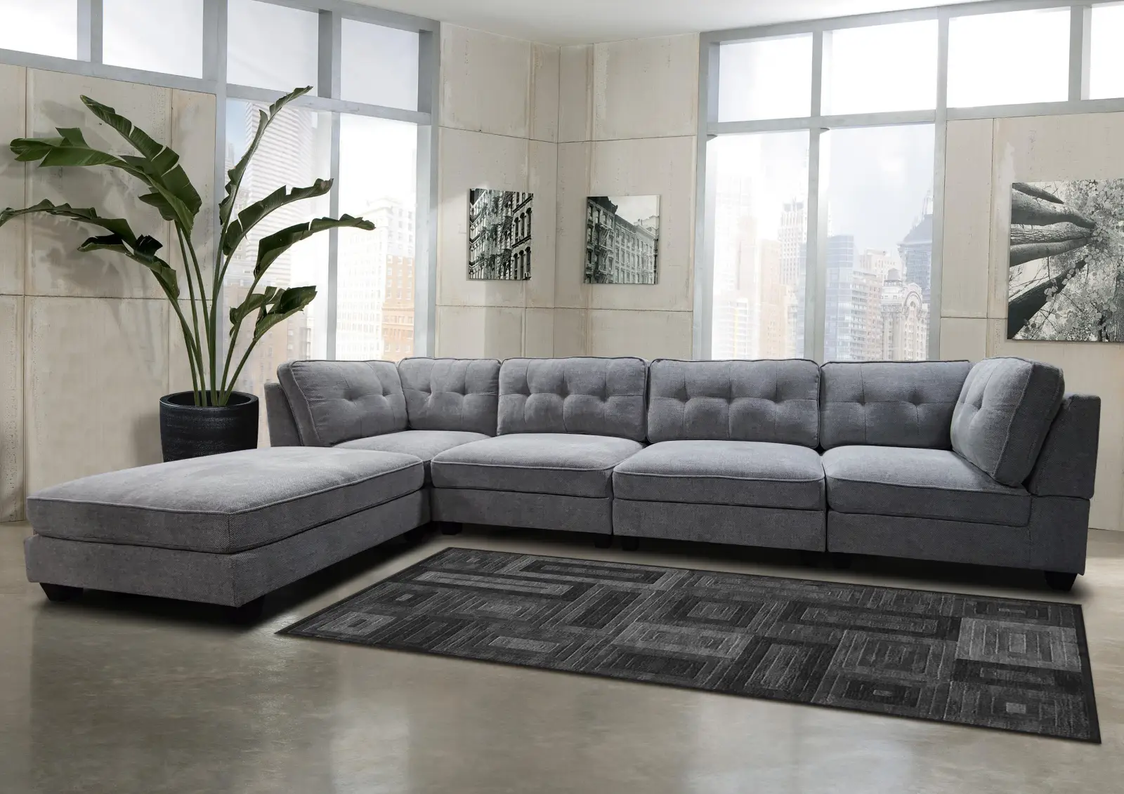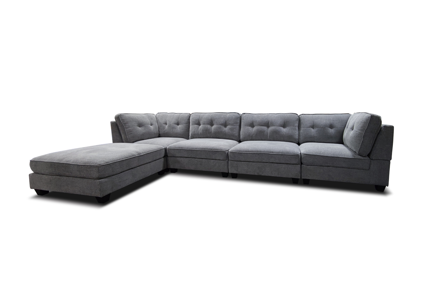 Explore the versatility of the Joya 4 seat modular sofa with an accompanying ottoman, providing a dynamic lounging solution tailored for your ultimate comfort. With multiple configuration options to personalise your space and upholstered in soft yet durable fabric, it grants you the freedom to sit, and unwind exactly the way you desire.