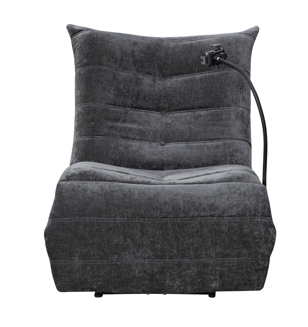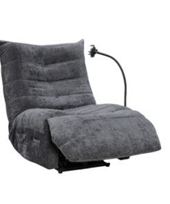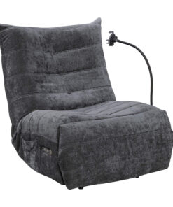 POWER RECLINING CHAIR W/WIRELESS CHARGER PHONE HOLDER, SWITCH W/USB & TYPE C Material: 100% Polyester black fabric Dimensions: 81W X 101D X 105H cm
