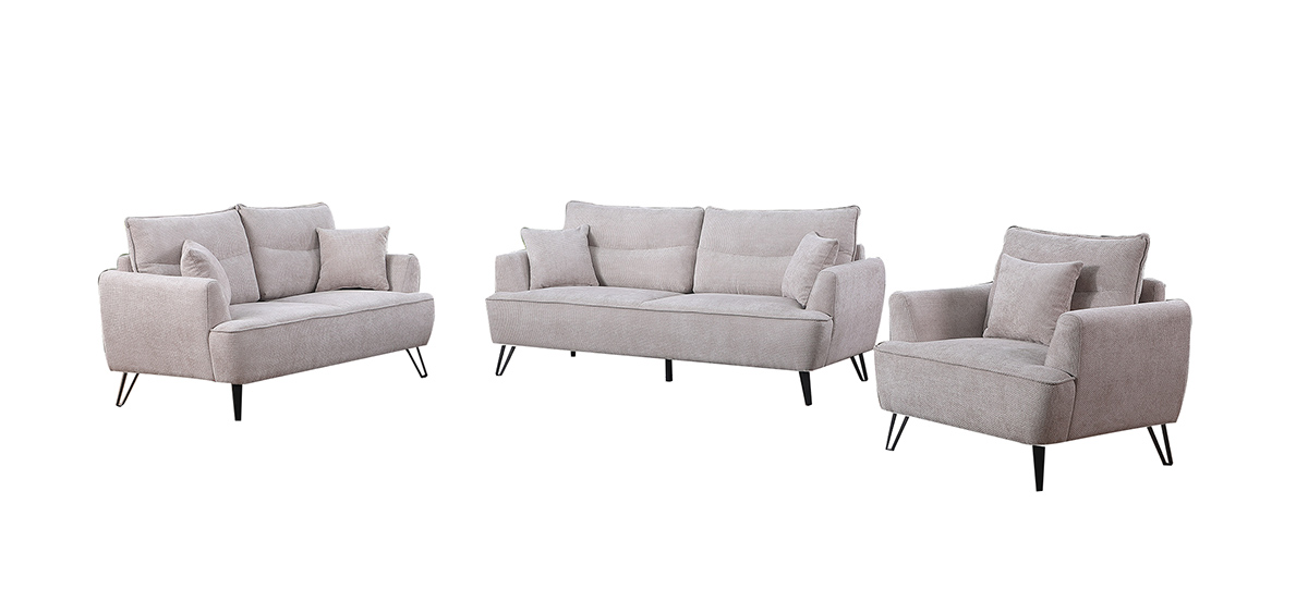 Lydia Lounge: The Lydia Lounge brings a sophisticated charm to your living area. It features a stylish beige finish for a versatile and elegant look. This lounge set offers a range of seating options for your comfort.