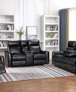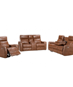 Experience ultimate comfort and style with our Nadia Lounge wirth Manual Recliners Set. Each seat features plush cushioning and manual recliners for total relaxation. The 3-seater includes a drop-down tray with cup holders and a built-in charging station, combining convenience with luxury. Built for durability and available in classic Black or elegant Tan, this lounge set is the perfect blend of sophistication and comfort for any living space