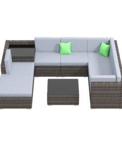 Experience contemporary living and functionality, with the 9-piece black and grey rattan sofa set designed by Milano. Made from PE wicker rattan and with a sturdy and hidden Steel frame, this set is weather and UV-resistant allowing it to withstand all weather conditions.